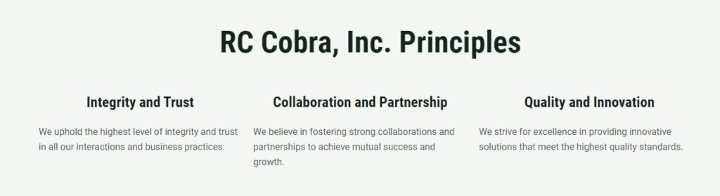 We aim to show our appreciation by compensating individuals for referring other individuals or companies that engage in business practices with RC Cobra, Inc.