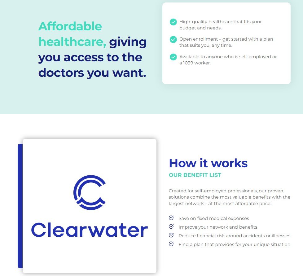 Is your health coverage confusing & expensive? Clearwater understands. With plans designed specifically for entrepreneurs, small business owners, and 1099 workers - don’t settle for low-quality healthcare.